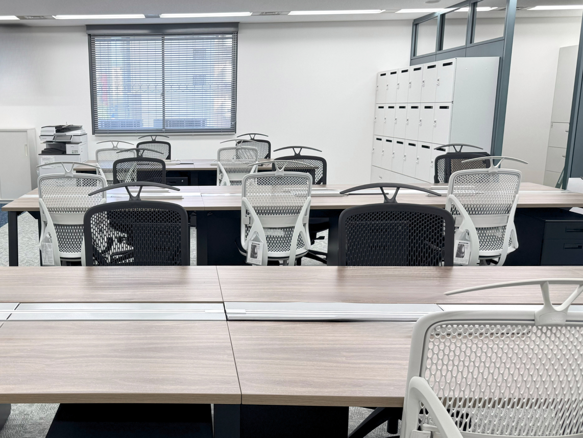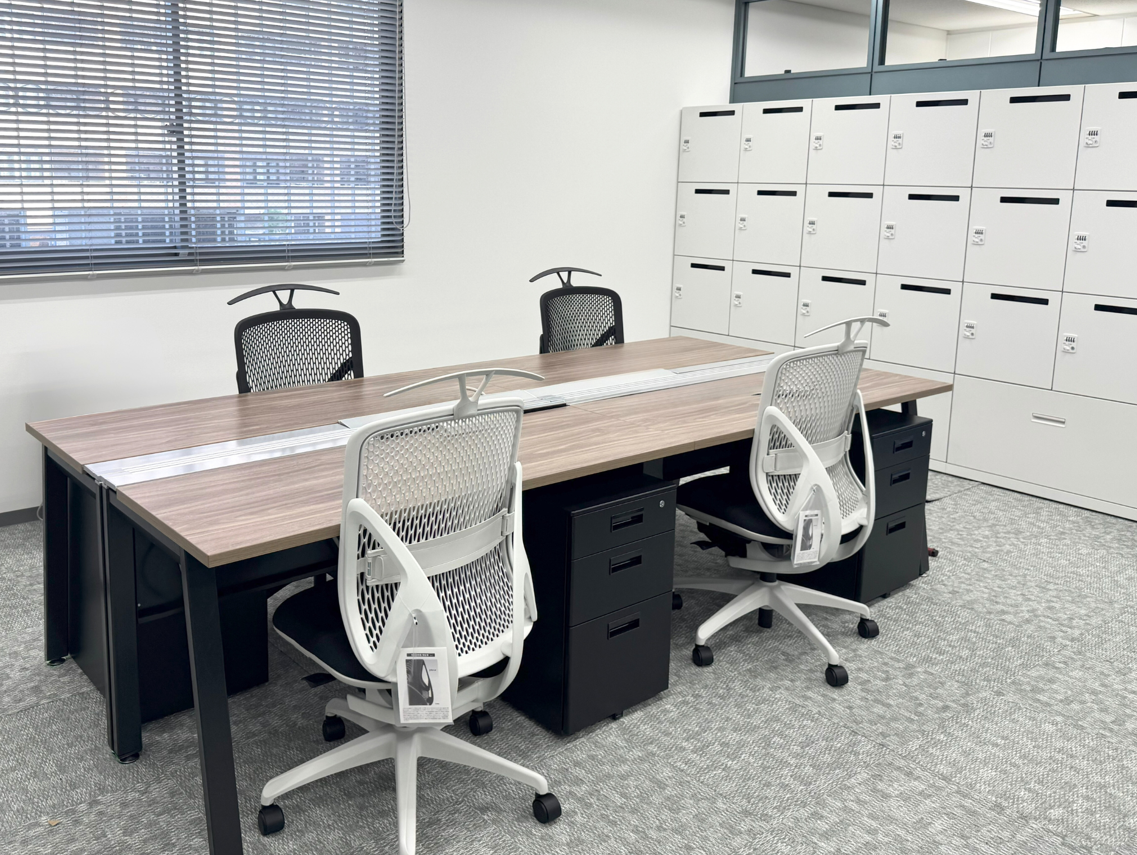 執務室はグレーのカーペットとモノトーンのデスク・チェアで構成された、集中しやすい環境です。