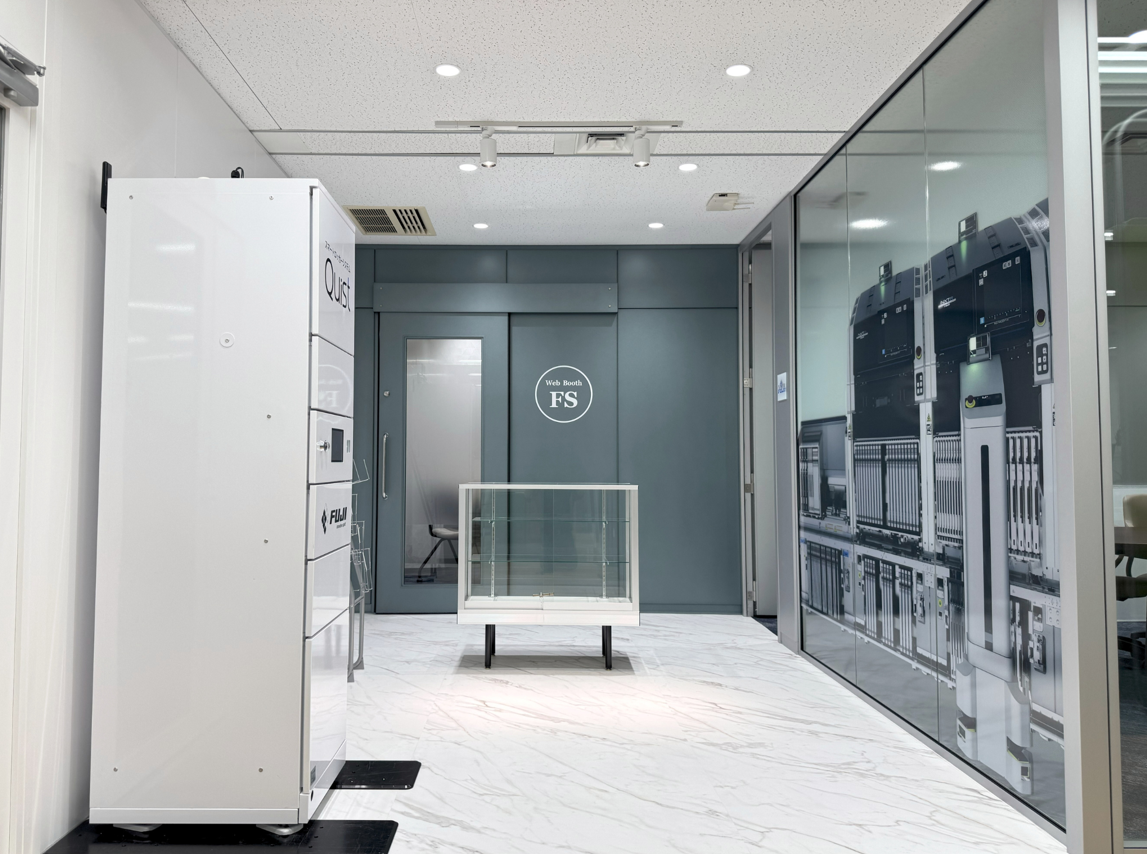 ガラスのパーティションには株式会社FUJI様の電子部品実装機や工作機械をイメージさせるグラフィックデザインを施し、来訪者に強いインパクトを与えます。