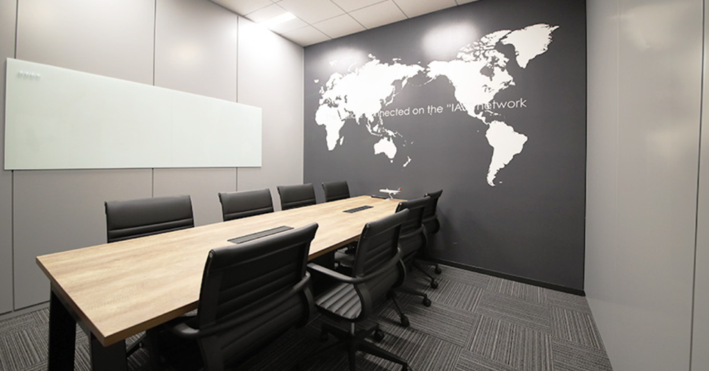 - 視線の誘導:エントランスの正面にコーポレートカラーのアクセントクロスを配置することで、来客者の印象に強く残るブランディングが可能です。