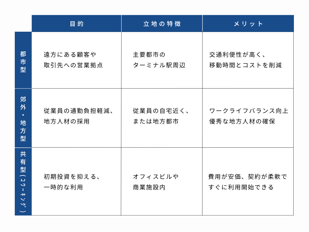 - BCP(事業継続計画)対策:本社機能が麻痺した場合でもオフィスが分散しているため、業務を継続できます。災害リスクに対するリスク分散の観点からも有効です。