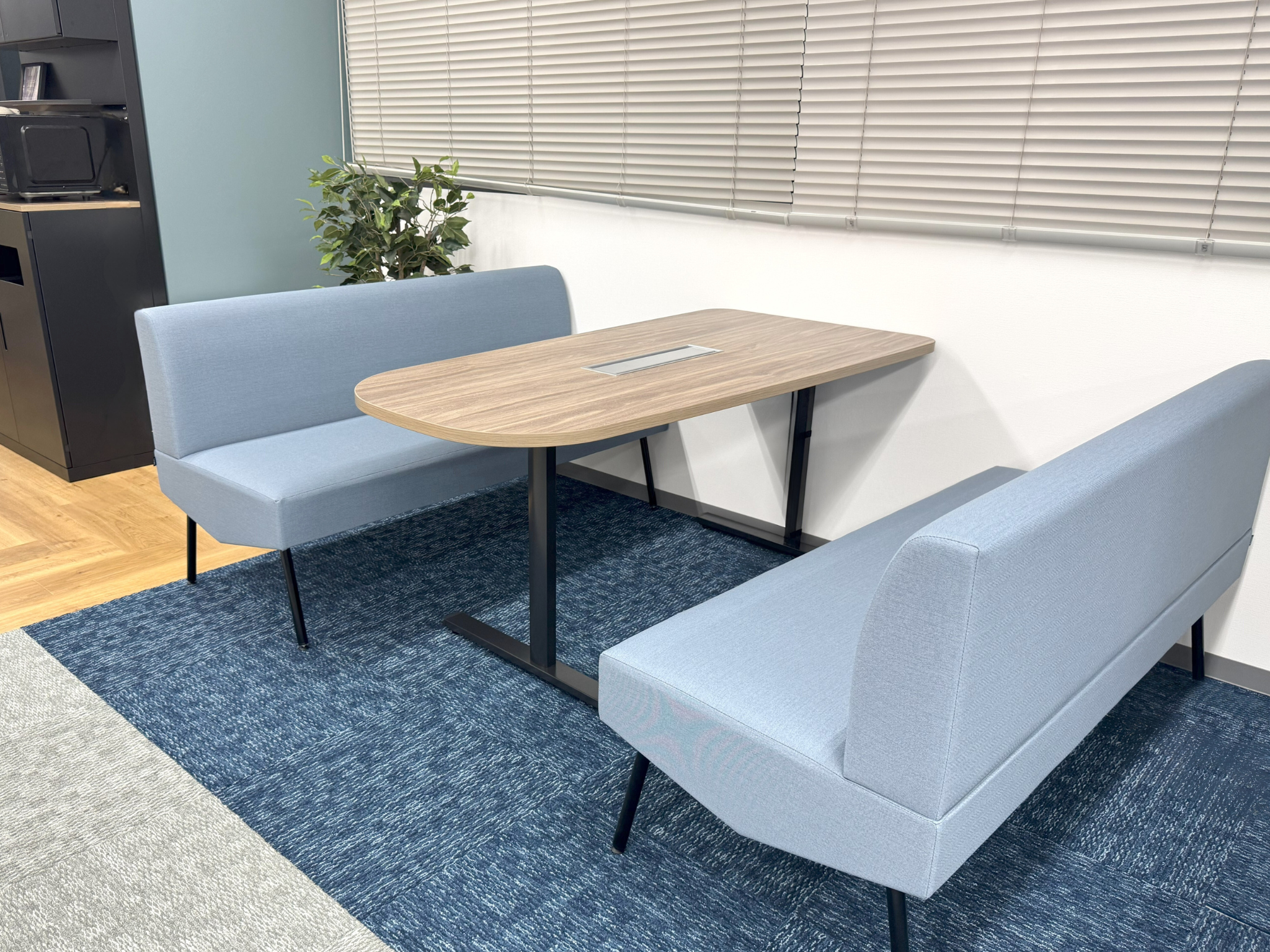 このボックスソファーエリアは簡易的な打ち合わせや集中したい時のソロワークにも利用可能です。